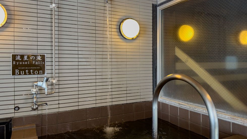 さらに温泉内には新たな水風呂も! ホテル近くの観光名所「流星の滝」をモチーフとした水風呂は、滝に打たれるような仕掛けになっています。ボタンを押すと、頭上からよく冷えた水が滝のように落ちてくるので、水風呂に浸かりながら、頭も顔も一気に冷やすことができますよ。まるで滝行をしているような気分を味わえ、終わるころには身も心もスッキリ。ぜひ新しい水風呂を試してみてくださいね。