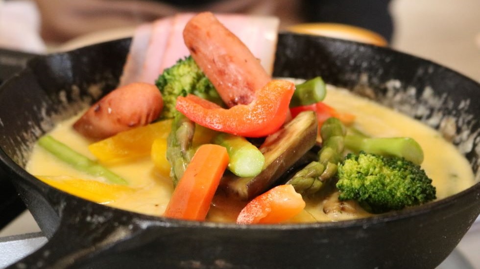 お昼には十勝産食材を使用した特製チーズフォンデュを召し上がれ。十勝の青空の下で味わうチーズフォンデュは、まさに格別! 食事と一緒に「めむろワイナリー」のワインも別途追加料金にて楽しむことができます。ツアー参加日は予約時に選択してみてくださいね。こちらのプランは、開催地の芽室町まで各自で移動(ホテルから車で約30分)する必要があります。