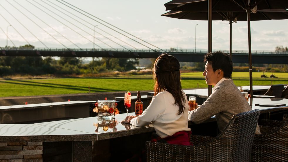 おすすめは「十勝川温泉 第一ホテル 豊洲亭・豆陽亭」です。『足湯テラス はるにれ』は2017年に誕生したホテルの新たなコンテンツ。ロビー近くにあり、気軽に訪れることのできるこの場所は、外に身をおくことで、十勝の本当の空気感とモール温泉を肌で感じられるおしゃれな空間です。
