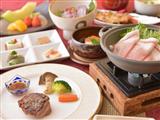 地元の旬食材をたっぷり使用した夕食は個室の食事処で。前菜からデザートまで月替わりの懐石料理は、約10品ほど。厳選された黒毛和牛のしゃぶしゃぶを味わえるグレードアッププランも人気です。
