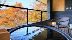 宮城野温泉が楽しめる「ホテルインディゴ箱根強羅」のコンセプトは「ネイバーフッドストーリー」。箱根・強羅の伝統やアート、地元を愛するスピリットを、客室やお風呂、食事といった滞在を通して五感で楽しんでくれることを大切にしているホテルです。客室には専用の温泉が設置され、川のせせらぎを聞きながらリラックス。水着を着て楽しむサーマルスプリングは色彩豊かなアーティスティックな空間で、ジャグジーや寝湯を楽しめます。極めつけは箱根・強羅の味覚を味わい尽くす薪グリル料理。グリルで旨味を閉じ込めたお肉や魚料理がメインとなったコースを3つ用意してゲストをもてなします。そのほか、インディゴブルーに変身するオリジナルカクテルなども。子連れでもカップルでもOK。感度の高い、幅広い年代に愛されているホテルです。