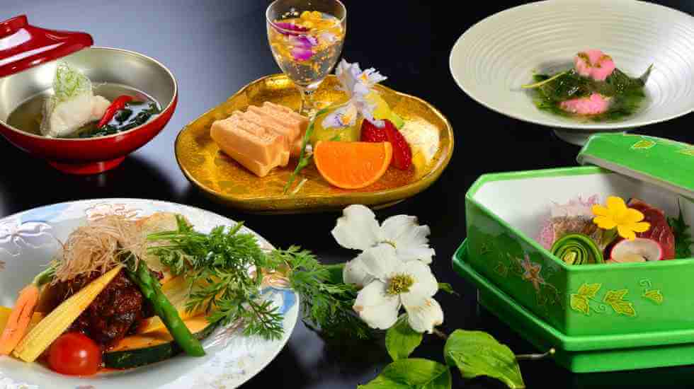 「箱根フォンテーヌ・ブロー仙石亭」は、伝統的なフレンチと大涌谷温泉の湯を楽しめるオーベルジュ。12歳以下は宿泊はできない大人のための宿です。源泉かけ流しの温泉露天風呂付きの客室は、全12室。大涌谷から引湯する大涌谷温泉で、白濁した色が特徴です。客室によって半露天風呂や露天風呂になっており、浴槽も陶器風呂や岩風呂と異なる造り。気になるタイプで客室を選ぶのもおすすめですよ。宿で味わえるディナーは、日本人による日本人のためのフレンチ料理。帝国ホテルに20年勤務していたオーナーシェフからしっかりと意思を受け継いだ料理長が、アミューズに始まり魚と肉の両方を味わえるメイン、そしてデザートまで、五感を刺激する料理を堪能できます。