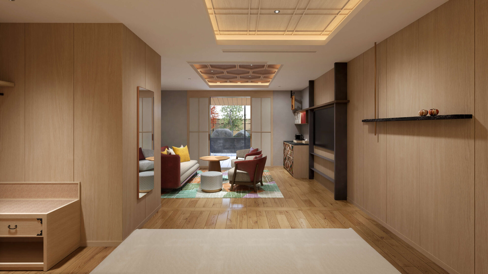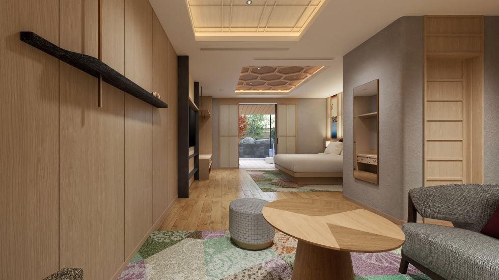 「ホテルインディゴ箱根強羅」は、全室に天然温泉風呂を備えたライフスタイル型ホテル。寄木細工や地元写真を用いたアート空間、早川沿いのリバーサイド客室、美術館エリアに近い立地が特徴です。水着着用のサーマルスプリングやヒマラヤ岩塩サウナも完備し、食事は豪快な薪グリルが自慢の「リバーサイドキッチン&バー」にて。箱根の文化と自然を五感で感じる、心踊る滞在が楽しめます。