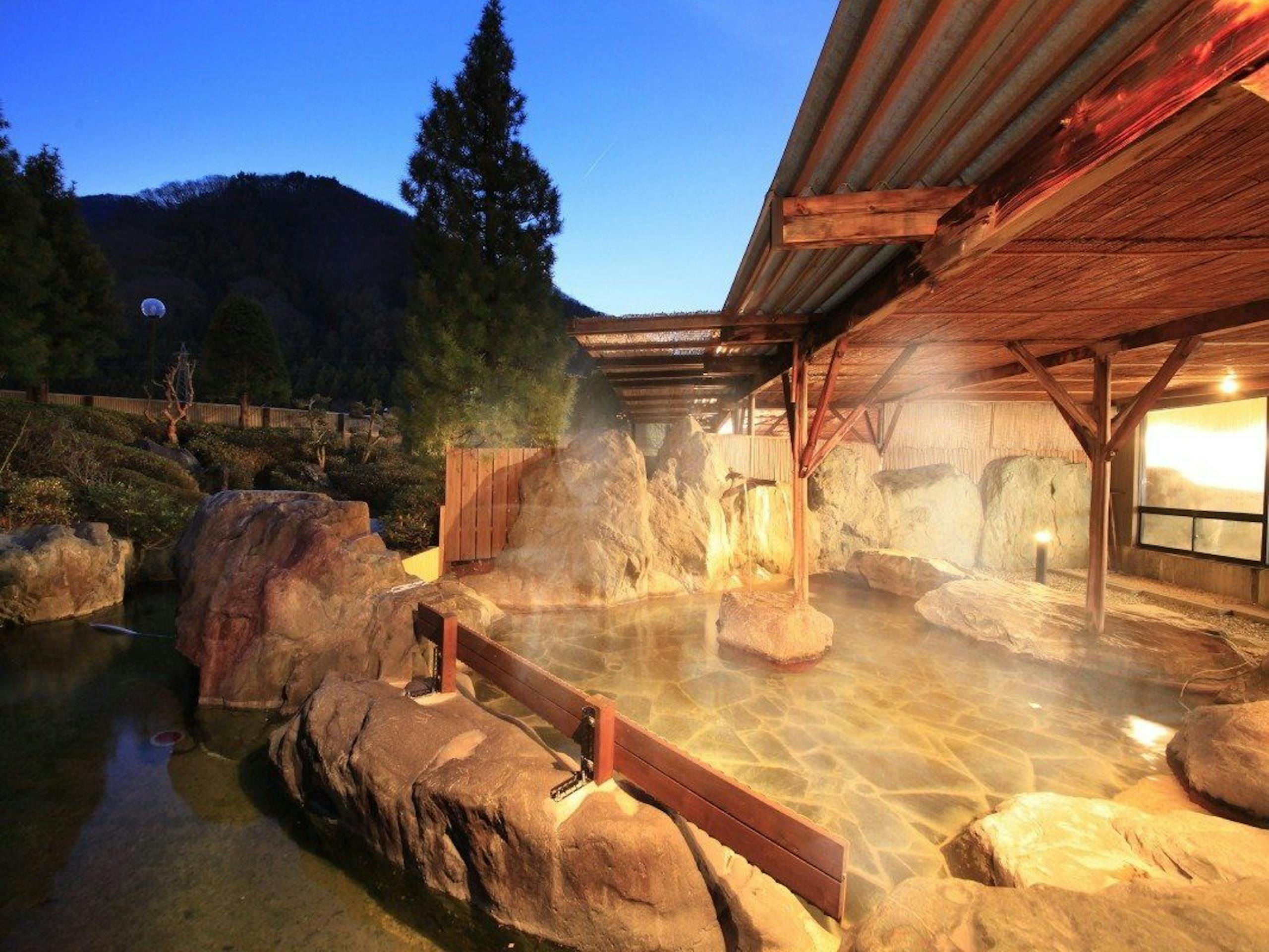 露天風呂からは昼神温泉特有のとろりとした湯を独り占め。夜には満天の星が湯面に映り、阿智村ならではの幻想的なひとときを演出します。
