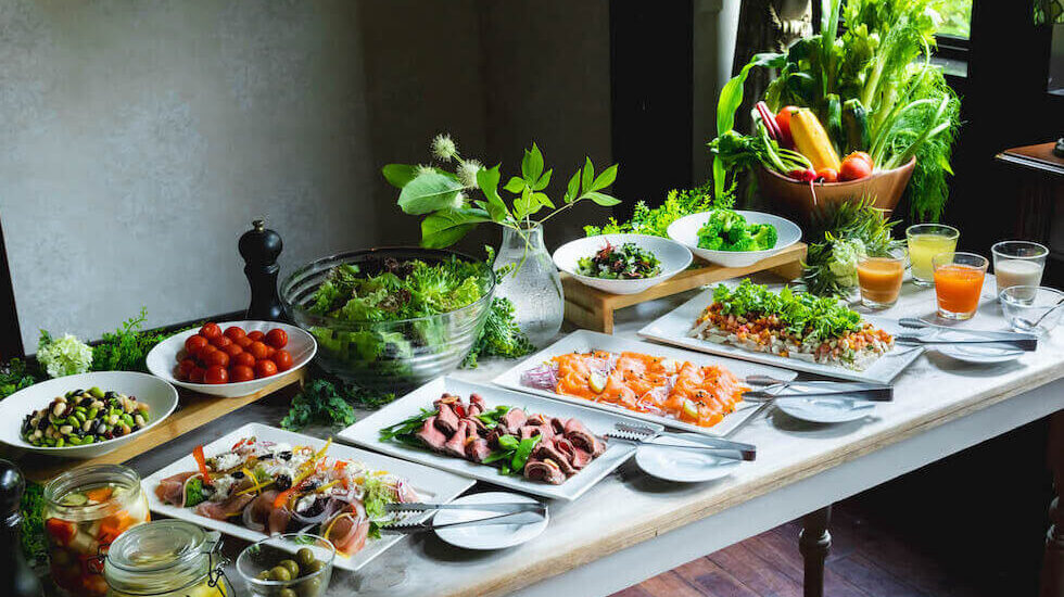 おいしい朝食が食べられる軽井沢のホテルのひとつ「軽井沢プリンスホテル ウエスト」。ゴルフ場やテニスコートなどが徒歩圏内にあり、アクティビティの拠点としてもおすすめのホテルです。朝食は好みのジャンルに合わせて2つのレストランから選択可能。「ALL DAY DINING LOUNGE/BAR Primrose」では、色とりどりの和洋食メニューがブッフェスタイルで味わえます。軽井沢のある長野県のブランド牛「蓼科牛」を使用した「蓼科牛の牛丼」は、特定のファンもいるほど人気のあるメニューなので、ぜひ味わってみて。また、「日本料理 からまつ」の朝食は、信州味噌で作った味噌汁付きの和食メニューを提供。ほかほかの長野県産「五郎兵衛米」と相性ぴったりな季節の惣菜と共に、ほっこり落ち着く朝食を楽しんでくださいね。