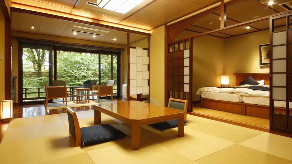 ※駐車場から玄関まで40メートルほど石畳の緩い階段になっており、館内は2階建てでエレべーター・エスカレーターなどはありません。なるべく負担の少ない部屋を案内してもらえるので、予約の際に宿に相談してください