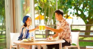 「ホテル日航アリビラ -ヨミタンリゾート沖縄-」は、読谷村の美しい海辺にたたずむ人気のリゾートホテル。北谷エリアからもアクセスしやすい立地です。特にディナーの多彩な選択肢が魅力的。ディナータイムには、ブラッスリー「ベルデマール」で、読谷ならではの本格フレンチを堪能。美しい器に盛り付けられた料理はアートのような完成度です。また、日本料理・琉球料理「佐和」では、今帰仁アグーのしゃぶしゃぶ会席が人気。カジュアルブッフェ「ハナハナ」では、沖縄料理から世界各国の料理まで幅広く提供され、ファミリーやグループにぴったりです。夏季限定のビーチサイドBBQ「ソル」では、波の音や夜風を感じながらリゾート感あふれる食事が楽しめます。多彩なディナーがそろうアリビラは、北谷や読谷エリアで特別なひとときを過ごしたい方におすすめのホテルです。