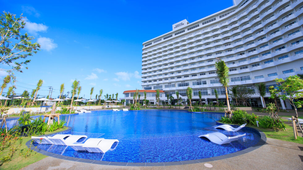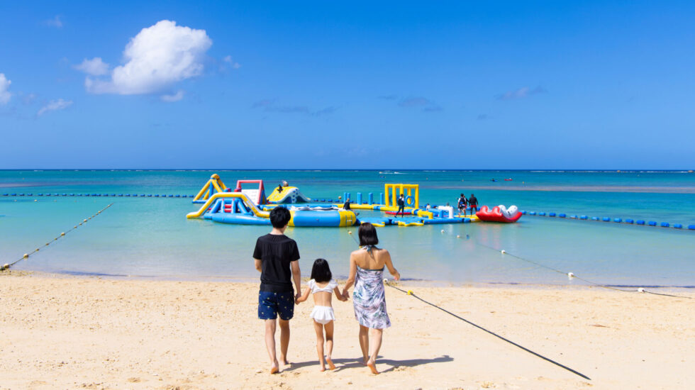 北谷・読谷エリアで大迫力のプールが楽しめるホテルが、「グランドメルキュール沖縄残波岬リゾート」。3種のウォータースライダーは、子どもはもちろん大人まで夢中になるおもしろさです!水深0.25メートルの子ども用プールもあるから、子連れでも安心して楽しめますよ。プールからホテルの前に広がる残波ビーチへは歩いて行き来でき、4月~10月の期間は、ビーチの浅瀬に設置されたウォーターアスレチックを楽しめます。ホテル宿泊者なら1時間無料で遊べるのも、子連れにうれしいポイントです。また、オールインクルーシブで楽しめるマリンアクティビティや、館内で参加できるクラフト体験もあり、子連れに人気ですよ。