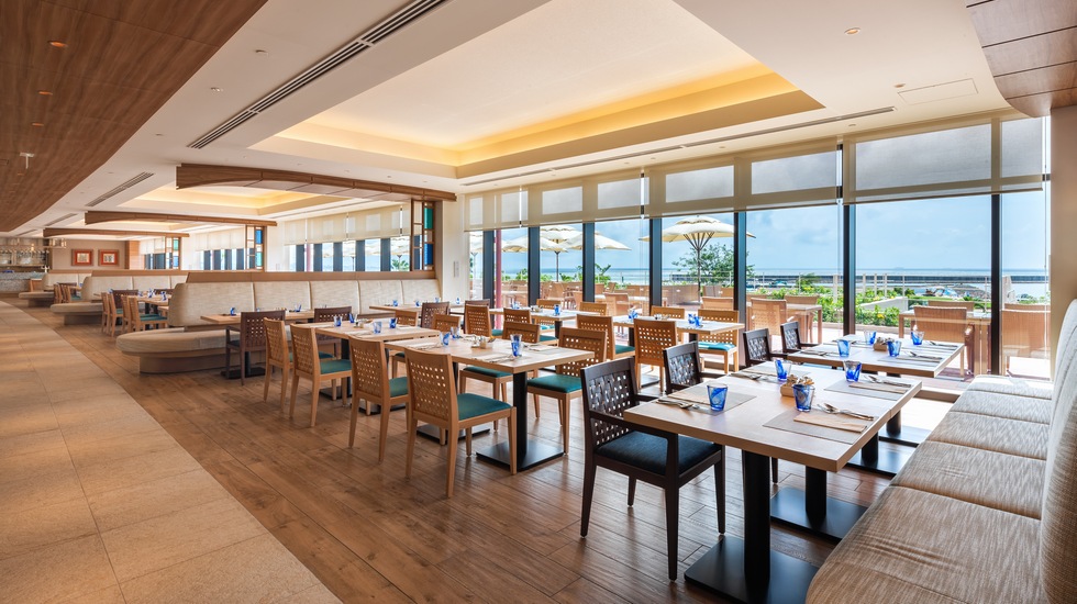 北谷町・読谷村エリアでランチ提供のあるホテルを探すなら、まずは「ヒルトン沖縄北谷リゾート」をチェック。ホテル内のレストランでは、朝食・ランチ・ディナーと一日を通して多彩なグルメが楽しめます。ランチの舞台は、3階のビュッフェレストラン「スリユン」。メニューは季節によってテーマが変わり、一年を通して違う味に出会えます。週末限定で行われるカニの食べ放題も人気です。北谷町・読谷村の青い空と海を眺めながら、ホテル自慢の料理を堪能して。料理以外では、北谷町・読谷村で最大級の規模を誇るリゾートプールや、9割もの客室がオーシャンビューなのもヒルトン沖縄北谷リゾートの魅力的なポイントです。