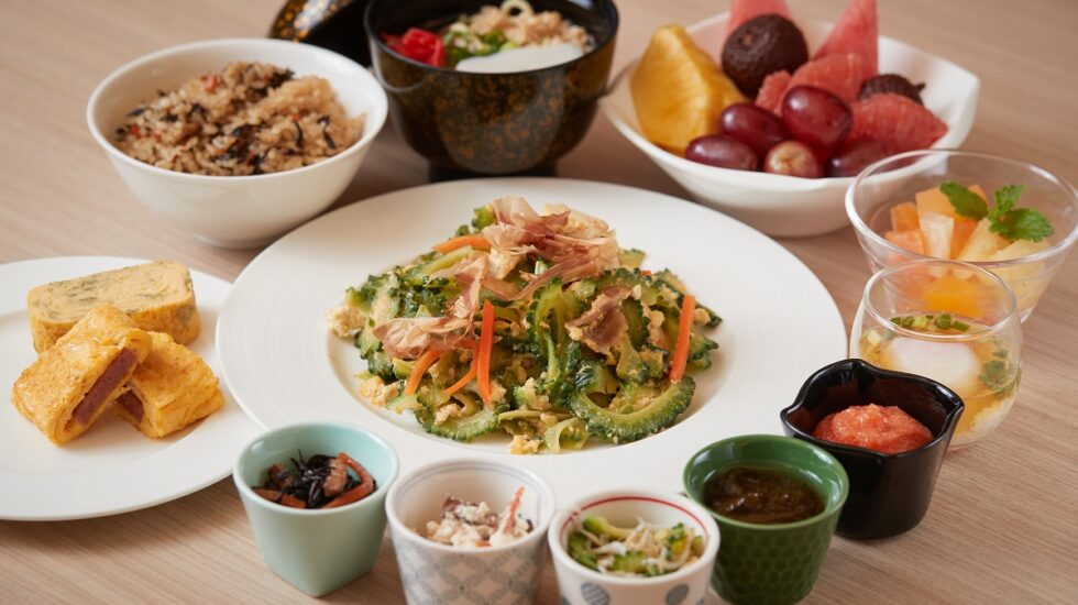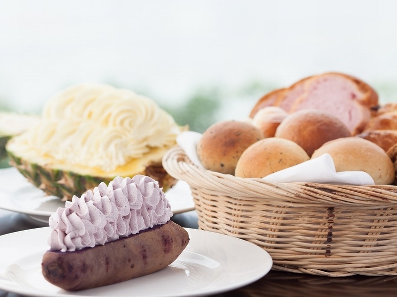 読谷村にいながら南欧風リゾート気分が味わえる「ホテル日航アリビラ -ヨミタンリゾート沖縄-」。読谷村が誇る「ニライビーチ」が客室から独占できるオーシャンビューの部屋や、異国情緒溢れるパティオ(中庭)ビューの部屋が揃います。ホテルでは3カ所のレストランで朝食が味わえるので、連泊の場合も毎日新鮮な気持ちで朝食が楽しめますよ。少しずつ色々な種類を楽しみたい方はブラッスリー「ベルデマール」での洋食ブッフェがおすすめ。紅イモやパイナップルを使ったホテル特製のバナーを焼きたてのパンと一緒に頬張れば、たちまち幸せな気分に。同じ読谷村内に位置する「グランドメルキュール沖縄残波岬リゾート」との相互利用サービスを使えば、朝食からスパークリングワインを楽しむ、なんて優雅な時間が過ごせますよ。