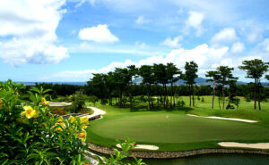 那覇空港から車で約80分の場所にある「カヌチャリゾート」は、約80万坪もの広大な敷地を持ち、雄大な自然に囲まれたリゾート。日本でもトップクラスの広さと、豊かな自然の中で行うゴルフは格別なものになること間違いありません。沖縄特有の気候の中で清々しいプレイが楽しめるヴィレッジコース(アウトコース)と、太平洋の水平線を見渡しながらプレイするシーサイドコース(インコース)の2コースがあります。2人1組でプレーする「ハッピーゴルフ」やハーフラウンドで楽しむ「リゾートハーフプレー」など、ビギナーでも気軽に楽しめるプログラムがあるので気軽にプレイできるのがうれしいですね。