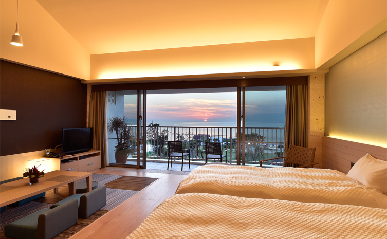 色とりどりの熱帯魚が集まる天然ビーチ「フサキビーチ」が目の前に広がる、石垣島を代表するリゾート「フサキビーチリゾート ホテル&ヴィラズ」。2019年にオープンした全室バルコニー付きの新棟「ノースウイング」は、レストランやフロントなどにアクセスがしやすくおすすめです。ベッドが窓に向かって配置された「オーシャンビューツイン」や、優雅なパティオ付きの「パティオ スーペリアツイン」など、バラエティ豊かな部屋が揃っています。天気の良い日の夜は、石垣島内の星がきれいに見えるスポットやフサキビーチで開催されている星空ツアーに参加して、夫婦ですてきな思い出を作るのもいいですね。
