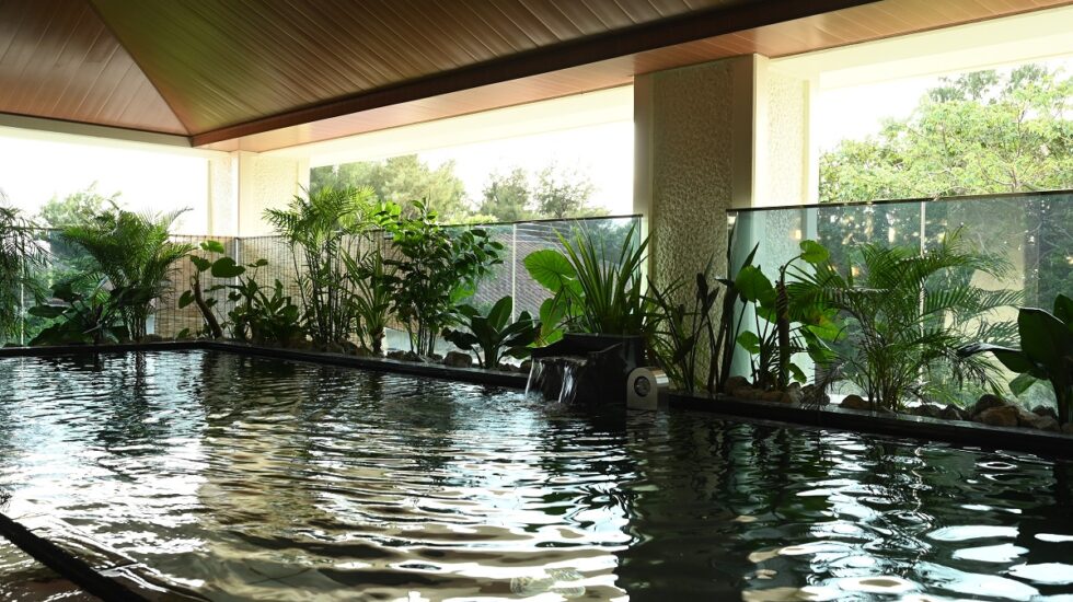 ホテル棟のオーシャンズウイングとヴィラ棟のヴィラガーデンからなる「グランヴィリオリゾート石垣島 オーシャンズウイング&ヴィラガーデン」。カラオケルーム・卓球台・ビリヤードなどさまざまな施設が揃っていて、2種類の屋外プールと通年利用可能な屋内プールを楽しむこともできます。エリアごとに大浴場が用意されており、オーシャンズウイングの大浴場「華のゆ」は岩盤浴を完備。ヴィラガーデンの大浴場「かぐらの湯」はヴィラ宿泊者専用なので、混みあうことは少ないですよ。どちらの大浴場でも、人気のサウナを楽しめます。大浴場でさっぱりした後は、沖縄のアイスクリームブランド「ブルーシール」3種類が食べ放題。湯涼みのクールダウンにいかがでしょう。