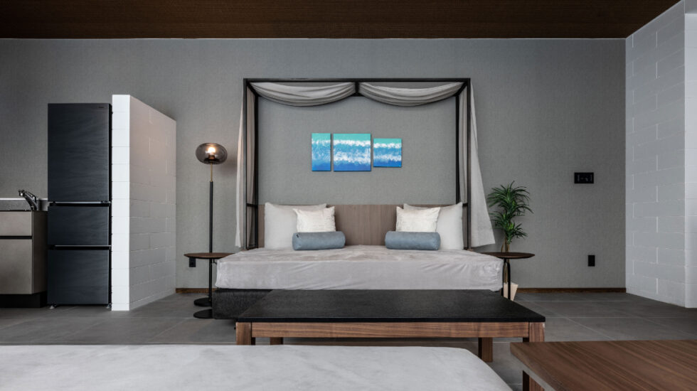 「CLASS THE FIRST」は、カップルのおこもりステイにおすすめ。壁で覆われたヴィラタイプなので、ほかのゲストを気にすることなく2人だけの時間が満喫できます。気持ちの良い風が通る中庭には、広々としたプライベートプールやサウナを完備。南国らしい景色の広がる昼間や、星空が降り注ぐ夜の時間帯など、好きな時に好きなだけリゾートらしいひと時が過ごせる場所。客室に設置されたキッチンで自炊をしたり、プールサイドでBBQを楽しむこともでき、ヴィラの外に出なくても思う存分おこもりステイが叶えられますね。CLASS THE FIRSTでは宿泊客価格でお得にレンタカーを借りられるので、オープンカーで絶景広がる宮古島をドライブするのもおすすめですよ。