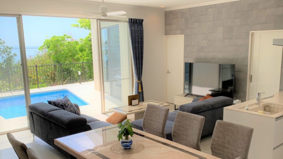 ウミガメも泳ぐ「博愛わいわいビーチ」が目の前に広がる「フェリスヴィラスイート宮古島・上野」。1棟貸切の別荘タイプのヴィラなので、他のゲストを気にすることなく自分たちだけのプライベートな時間を過ごせます。全ての客室にはプライベート温水プールを完備。プールサイドでドリンク片手に優雅な時間を過ごしたり、満天の星空を眺めたりと思い思いの時間を楽しんで。2ベッドルームタイプは最大7名まで宿泊可能なため、ファミリーや三世代旅行にもおすすめです。客室の冷蔵庫にあるさんぴん茶やオリオンビールなど沖縄らしいドリンクは飲み放題。ステイ中のドリンクに困る心配がないのはうれしいポイントです。