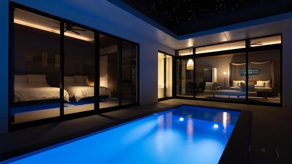 「Villa Conte」のヴィラは、サウナかプール、それぞれに特化した2棟のみの一棟貸し。プールヴィラには、宮古島最大級となる全長9mのプライベートプールがあります。しかも温水仕様なので、冬でも気軽に水遊びができるのがうれしいポイントです。また、夜24時までライトアップされたナイトプールで、昼とは異なる幻想的な雰囲気を味わえます。魅力的なのが、プールヴィラ限定のワインセラーです。シャンパンや赤・白ワインを有料で購入可能で、夜のくつろぎ時間に最適ですね。他にも、本格BBQグリルをレンタルしてプールサイドでBBQを楽しむことができます。食材も別途注文可能で、夜風に吹かれながら仲間や家族と囲むBBQは、旅の思い出をより一層彩ってくれるでしょう。