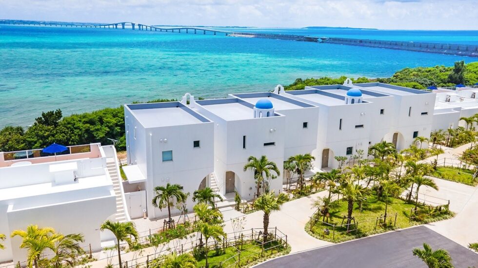 ホテルでレンタカーを手配するなら、2024年3月に伊良部島に誕生した「サントリーニ ホテル&ヴィラズ 宮古島」がおすすめ。白い外壁と青いドームが美しい、ギリシャのサントリーニ島をモチーフにしたホテルです。全室50平米以上と広々としていて、テラスからは宮古ブルーの海や宮古島と伊良部島を繋ぐ伊良部大橋の絶景が眺められます。客室の外にも「ルーフテラス」や「ベルタワー」などフォトジェニックなスポットが点在しているので、散策しているだけでも楽しい時間が過ごせるはず。レンタカーの貸し出しサービスがあり、空きがあれば高級外車「BMW Z4」を1時間からレンタル可能。レンタカーでオープンカーが借りられるのはうれしいですね。島風を感じながら宮古島周辺をドライブする、そんなラグジュアリーな体験をぜひ試してみてください。