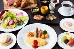 非日常感と利便性が両立する「ヒューイットリゾート那覇」は、ビュッフェの満足度を重視したい人におすすめのホテル。朝食ビュッフェでは、全170種類ものバラエティ豊かなメニューがずらりと並びます。中でも目玉コーナーは、好きな組み合わせでオリジナルのハンバーガーが作れる「バーガーステーション」。バンズやフィリング、ソースなどの組み合わせは85万通り以上!オーソドックスなバーガーもいいですが、せっかくなら変わり種の具材をサンドしてみてはいかがでしょう。また、ビュッフェ台には沖縄料理も揃っており、ラフテーやゴーヤチャンプルー、海ぶどうといった定番メニューだけでなく、地元民に愛されるディープなグルメも楽しめます。宿泊ゲストは、朝食ビュッフェが無料なのもうれしいポイント!ホテルは那覇の中心部に位置するので、国際通りや壺屋やちむん通りなどの観光スポットへのアクセスも良好です。滞在中は、最上階の「インフィニティ・エッジ・プール」にも足を運び、那覇市のダイナミックな景色を背景に写真を撮ってみてくださいね。