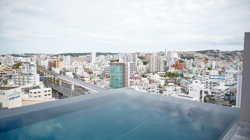 絶景のインフィニティ・エッジ・プールで、非日常感を満喫できるリゾートホテル。まるで街の上空にプールが浮かんでいるようですよ。那覇の街を見下ろしながら、最上級のバケーションをすごしてくださいね。水深40センチのエリアもあるので、子どもたちの心に残る旅になるでしょう。温水を使用しており、通年利用できるのもポイント。プールサイドに直結するバーでは、テイクアウト用ドリンクをデッキチェアで楽しむのも可能です。客室は、すべてバス・トイレが独立したセパレートタイプ。コーヒーマシンも設置され、いつでもくつろぎの時間を過ごせます。なお、レストランは2カ所あり、ゲストは朝食が無料で楽しめますよ。