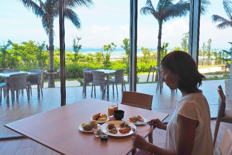 わずか6棟だけのオールヴィラリゾート「ヴィラブリゾート」。全室オーシャンビューで、専用テラスには憧れのプライベートプールが付いた贅沢なヴィラです。プールに浸かりながら日中は宮古ブルーの眺望を満喫し、夜には満天の星空を見上げる、そんな格別な時間が過ごせます。ホテルの目の前には宿泊者だけが訪れられるプライベートビーチを完備。シュノーケルを楽しんだり、レストランから届けてもらったドリンクを片手にまったりとした時間を過ごしたりするのもいいですね。1日1組限定で、ビーチで波の音を聴きながら優雅な朝食をとることもできます。気になる方は早めに予約を済ませてくださいね。