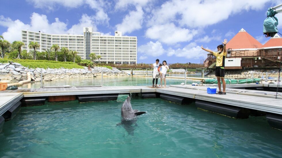 2020年4月に大幅リニューアルオープンをした「ルネッサンス リゾート オキナワ」。ワンランク上の滞在ができる「クラブフロア」から和室タイプまで、全ての客室でオーシャンビューが楽しめます。環境省が選定した「快水浴場100選」の特選にも選ばれた、透明度の高い「ルネッサンスビーチ」がホテルの自慢。ビーチで体験できる数多くのマリンアクティビティを取り揃えていて、中でもイルカと遊べるドルフィンプログラムが大人気なんです。イルカにタッチしたり、一緒に泳いだりと、小さい子どもも参加できるプログラムが用意されているのがうれしいですね。