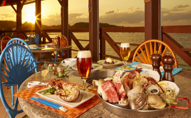 2020年4月に大幅リニューアルオープンした「ルネッサンス リゾート オキナワ」には、ディナーが楽しめる多種多様なレストランが9つも揃います。海上レストラン「コーラルシービュー」では、心地良い潮風を感じながらBBQを堪能しましょう。沈みゆく夕日を眺めながら、厚切りのお肉や新鮮な魚介類を使ったBBQを、お酒と一緒に味わう至福のひと時は最高です。また、「フォーシーズン」では目の前でシェフが調理する、伊勢海老や国産黒毛和牛などの鉄板焼が大人気。地元の食材を使用した琉球フレンチのコース料理を選ぶこともできます。ダイニングレストランでは、ホテルスタッフによる本格的なエイサーや三線演奏が鑑賞できるので、ぜひチェックしてみてください。