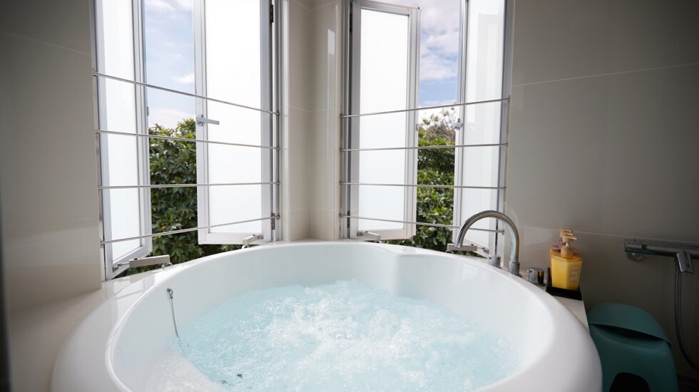 星のテラスもとぶ山里は「JUNGLIA OKINAWA(ジャングリア沖縄)」から車で約25分の距離にあるホテル。周囲は本部町の山々に囲まれ、客室からもグリーンビューを楽しめます。全ての客室にジェットバスを完備。ぜひ窓を全開にして、やんばるの大自然の風景に癒されながら、癒しのバスタイムを満喫しましょう。アメニティとして置かれたバブルバスの入浴剤を使うと、より贅沢に過ごせますよ。