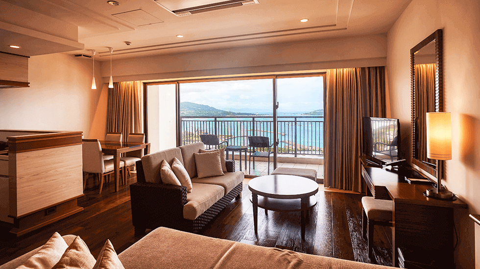 アラマハイナ コンドホテルは「JUNGLIA OKINAWA(ジャングリア沖縄)」から車で約27分の場所に位置します。全室オーシャンビューかつ、広さ55平米以上と一般的なスイートルーム並の広々とした客室を有し、IHヒーター完備のキッチン付きなので、長期滞在中も料理を作ったりと食事の面でも飽きずに楽しめます。ホテルの近くには「沖縄美ら海水族館」などの観光スポットもあるので、沖縄をたっぷりと満喫したい方におすすめ。