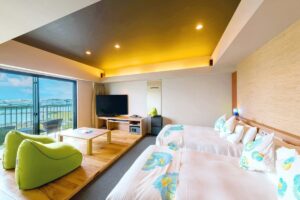 那覇空港から車で約12分でホテル「Southwest Grand Hotel 那覇 国際通り」に到着。ゆいレールの場合は、県庁前駅から歩いて5分ほど。那覇空港近くの都会を満喫しながらも、リゾートエリア並みの心地よく落ち着ける客室が人気のホテルです。全ての客室が45平米以上あるので、観光で疲れていてもゆったりとくつろげますよ。ホテル館内にはフィットネスジムもあり、沖縄旅の途中でもワークアウトできるのがうれしいですね。ドイツの木製フィットネス機器を導入しているため、おしゃれな雰囲気を楽しみながら体を動かしましょう。便利なコインランドリーも完備しているので、連泊やビジネスにも活用できそうですね。