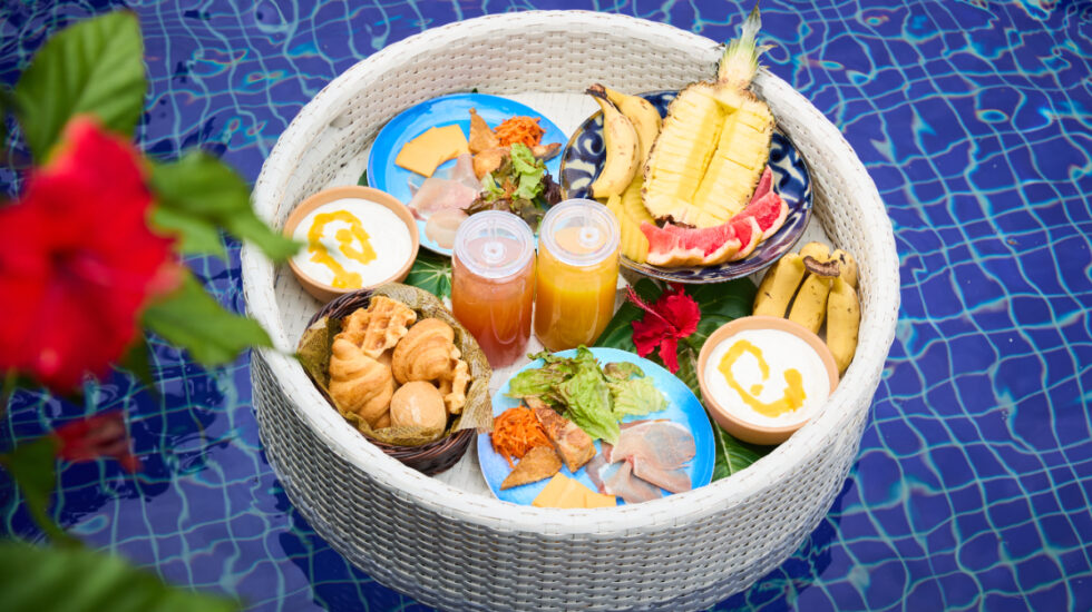 沖縄で人気の観光地「古宇利島」のひとつ手前にある島「屋我地島」に位置する「プールヴィラ 屋我地島」。全ての客室にキッチン・リビングルーム・和室が備わった、暮らすように過ごせるスイートヴィラです。全室に長さ8メートルの広々としたプライベートプールを配置。昼は太陽の光を浴びてアクティブに泳いで、夜はプールサイドで星を眺めながらゆったりと晩酌、なんてリゾートらしいひと時を過ごして。SNS映えする写真を撮りたい!なんて方は「フローティングブレックファースト」をオーダーするのもいいかも。色とりどりのフルーツやサラダなどをプールに浮かべて食べるおしゃれな朝食は、南国気分も盛り上げてくれます。