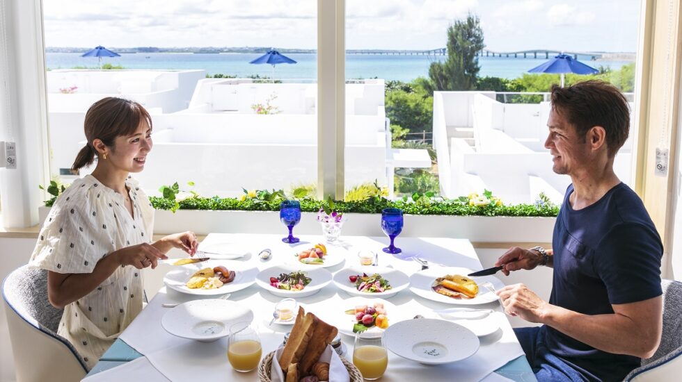 白と青の街として観光客に人気のある、エーゲ海に浮かぶギリシャ・サントリーニ島。そんなサントリーニ島に魅せられ、大自然の残る伊良部島に建てられたのが「ブルーオーシャン ホテル&リゾート宮古島」です。ちょっと贅沢に過ごしたい大人にぴったりの客室「ロイヤルスイートヴィラ」には、全室プライベートプールと屋上のジャグジーが完備。屋上のジャグジーテラスからは、伊良部大橋を一望できる絶景ビューが広がります。レストラン「エーゲ海」からの眺めも良く、特別感あふれるお料理を堪能することができますよ。