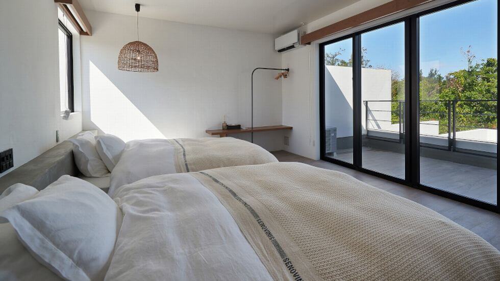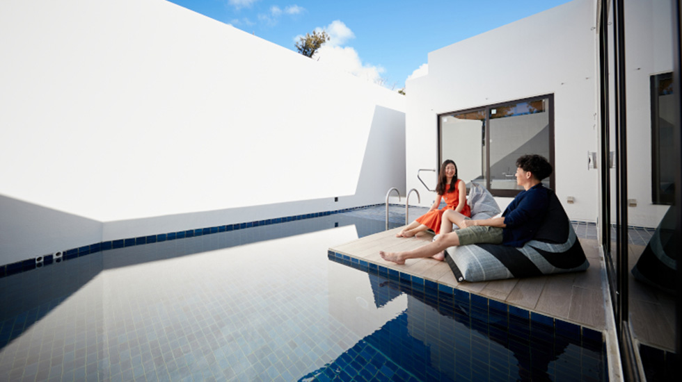 自然豊かな沖縄本島北部にある瀬底島。車で外周15分ほどの、ゆったりとした島時間が流れる離島に「LECEB SESOKO VILLA」は位置します。客室は全3棟が島内に点在する、スイート仕様のプライベートヴィラタイプ。最もコンパクトなヴィラでも259平米以上と、優雅で快適なステイが約束されています。どのヴィラにもプライベートプールとBBQコンロを完備。気持ちの良い海風を浴びながらプールに入り、エメラルドグリーンの海や星空を眺める。ここでしかできない特別な時間を過ごして。最も広い「Seaside deluxe suite」はベッドルームを2つ用意。大人数でワイワイステイするだけでなく、贅沢に日によって寝床を変える、そんな過ごし方も叶います。