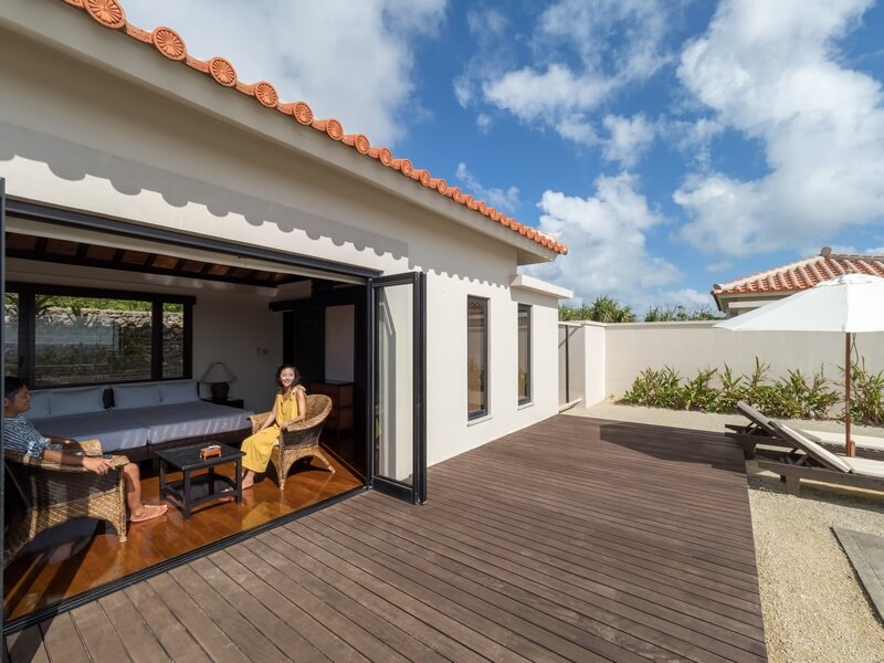 沖縄リゾートヴィラの先駆けとも言える大人の隠れ家「ヴィラブリゾート」。リゾート気分を盛り上げる、わずか6棟だけの赤瓦のヴィラタイプの客室。