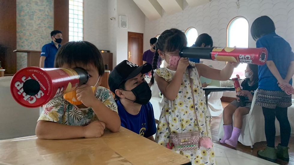 自分だけの手づくり望遠鏡を工作して遠くのものを見てみよう。
