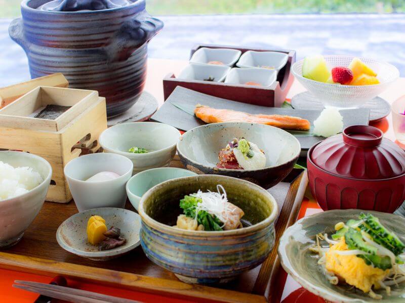 朝食は洋風、和風から選択を。洋風は品数豊富なアメリカンブレックファーストスタイル、和風は多彩な小鉢を楽しめる旅館のような和朝食。