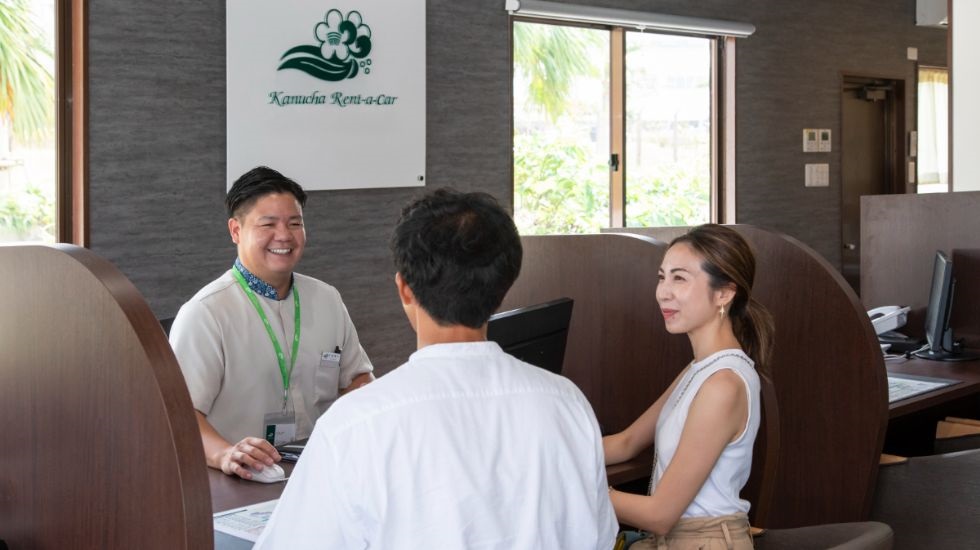 車移動が基本となる沖縄では、レンタカー利用者が多く、営業所に到着した頃には手続きカウンターに列ができていることもしばしば。「カヌチャレンタカー」は営業所が那覇空港のすぐそばで、送迎車に乗って3分ほどで着きますよ。