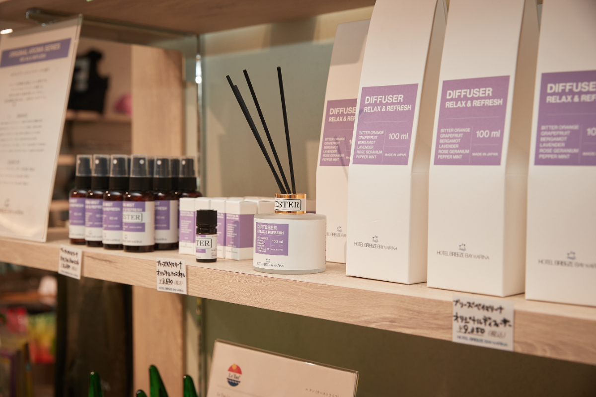 「ホテルブリーズベイマリーナ」の香りを閉じ込めたアロマオイルは、自分用のお土産にもおすすめ。