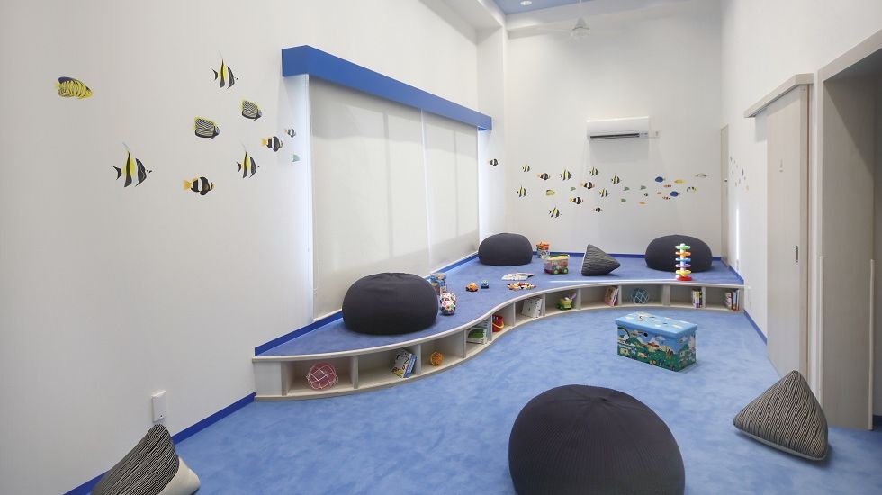 海をイメージしたキッズルームには、壁一面にお絵かきが出来る「お絵かきウォール」や多彩なおもちゃをご用意。