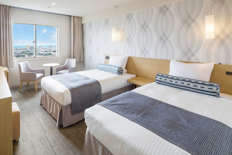 石垣市街の高台に位置し、八重山の街並みと海を望む「アートホテル石垣島」。白や木目を基調にした客室は清潔感と快適性に優れ、空気清浄機も全室完備。屋外プールや子ども用プールはファミリーにも好評で、超軟水の大浴場「にぃふぁい湯」が旅の疲れをやさしく癒します。レストランでは地元食材を活かした料理を提供し、毎晩ロビーで島唄ライブも開催。南国の非日常と心地よいひとときを味わえる、街近リゾートです。