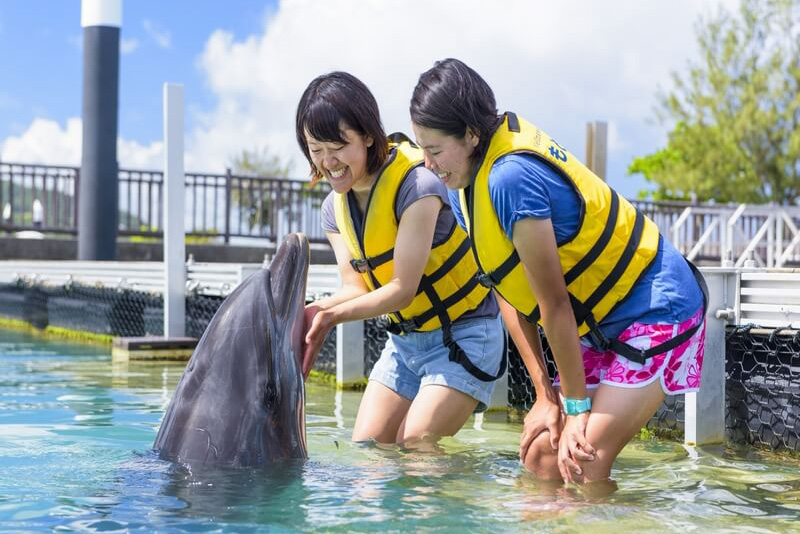 ホテルに隣接するもとぶ元気村にはイルカが棲んでいて、イルカと一緒に遊んだり学べる「ドルフィンプログラム」が充実しています。イルカと一緒に泳ぐこともできます! イルカとふれあったり、えさをあげたりと0歳から参加できる体験も豊富なので、年齢を問わずにみんなで楽しむことができますよ♪