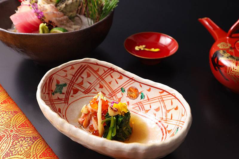 川内料理長が厳選した日本全国の食材を使い、1年の始まりを寿くお祝い会席です。おきなわ和牛蕪みぞれ鍋や赤飯など、新春の味わいをお楽しみください。