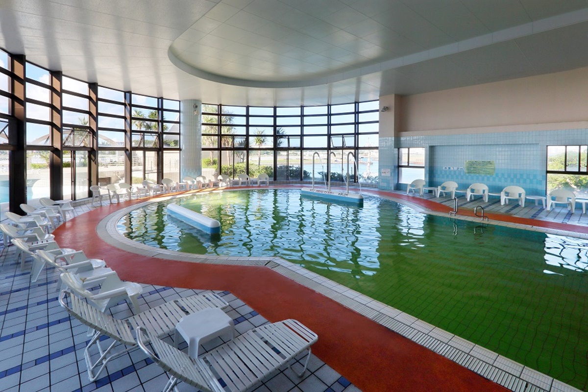 温泉水を7割とそこに真水を3割加水した、天然温泉を利用しているプールです。もっともリラックスできる温度33度~を保っており、通年楽しめるのもポイントです。温泉水を利用しているから、タラソテラピーの効果も期待できるのだとか!
