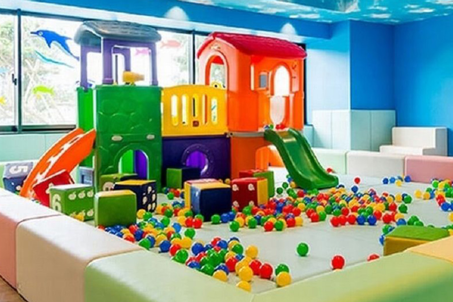 キッズコーナーは広々としたスペースに、ボールプールと滑り台付き遊具を完備。お絵描きスペースもあり、雨の日でも子どもたちの喜ぶ笑顔が見れますよ♪ また、海の生き物に囲まれたベビーコーナーには、赤ちゃんが楽しめる絵本やおもちゃを用意。どちらもクッション性のあるマットレスが敷かれているので、安心して遊ばせることができます。