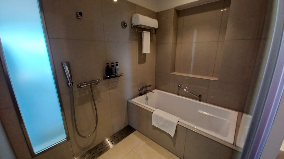客室にはバスルームも。足をゆったり伸ばしても入れそうな広い浴槽です。
