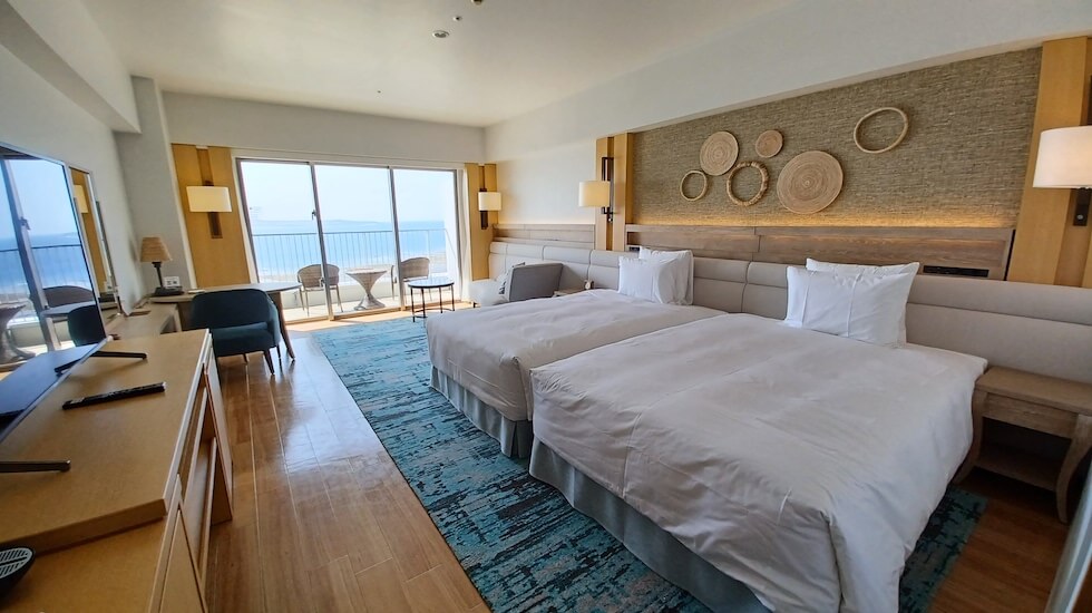 沖縄発の大手メーカー「オリオンビール」が手掛けるリゾートホテルとして新たに生まれ変わった、オリオンホテル モトブ リゾート&スパの客室について紹介します。