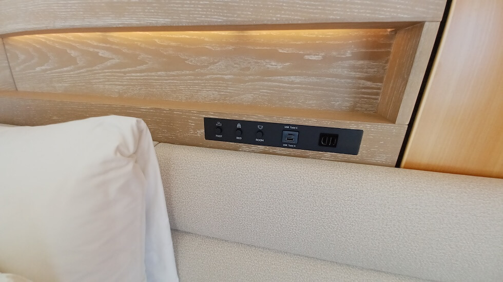 地味にうれしい、枕元にあるコンセント。スマホの充電も枕元で安心してできますね。