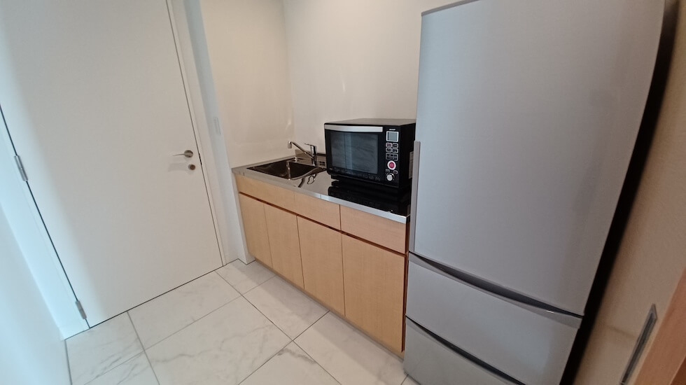 また、室内にで冷蔵庫やレンジも用意されています。長期滞在の際も便利ですね。
