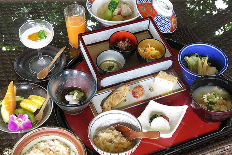 百名伽藍は神秘の地「百名」にある隠れ家的な高級リゾートホテル。那覇空港から車で35分ほどの場所にあり、海沿いに佇む和と琉球様式を融合した建物がゲストを迎えます。そんな沖縄らしさを存分に感じられる百名伽藍の、ランチとディナーの春メニューをご紹介します。11時30分から始まるランチメニューでは、春の訪れを感じることのできる先附や前菜のほか、メインには沖縄らしく人参シリシリーを添えた柔らかなローストビーフを楽しめます。