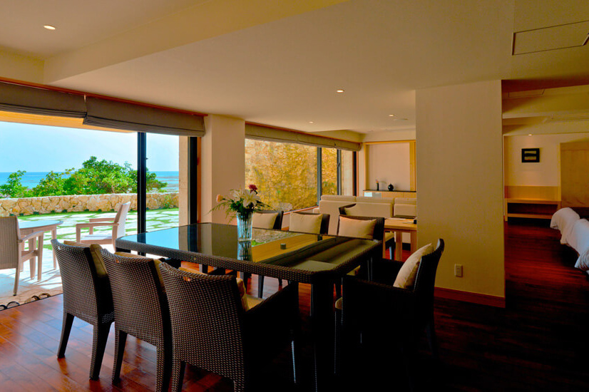 世界遺産の「斎場御嶽」や琉球創世神話の残る南城市に位置する「百名伽藍」は、和の雰囲気を感じさせる名前の通り、ホテルというより旅館のような佇まい。館内は本館と別館に分かれ、本館は13歳以上のみの限定利用。大人の隠れ家と呼ぶにふさわしい沖縄屈指のラグジュアリーホテルです。