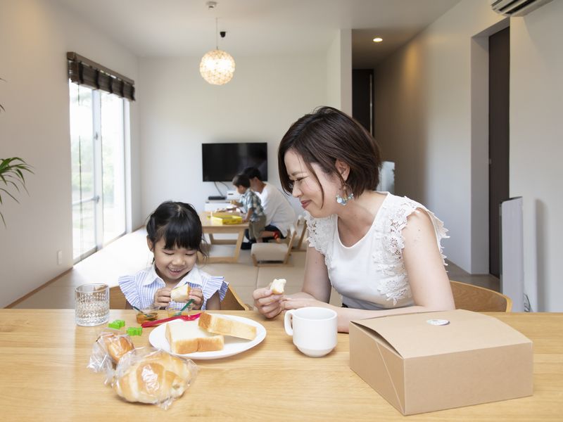 子ども連れの家族旅行なら、和室リビングとキッチンを備えたコンドタイプがおすすめです。仕切りのないオープンな間取りで目が届きやすく、座椅子型のロータイプのソファセットはテーブルも低めで、小さなお子さんにも使いやすい仕様に。周囲に気を使わずに家族だけで気楽に食事を楽しみたい時にもキッチンがあると重宝します。